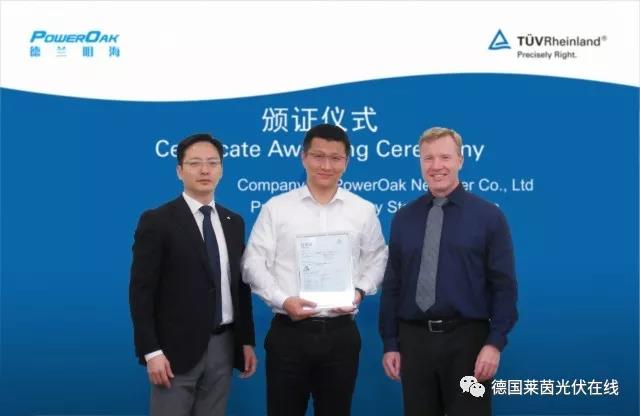 中國儲能網(wǎng)訊:12月1日,德國萊茵TüV集團(以下簡稱TüV萊茵)向深圳市德蘭明??萍加邢薰荆ㄒ韵潞喎QPoweroak德蘭明海)頒發(fā)了首張儲能系統(tǒng)的日本認(rèn)證證書。TüV萊茵大中華區(qū)太陽能及燃料電池技術(shù)服務(wù)總經(jīng)理李衛(wèi)春,TüV萊茵大中華區(qū)周邊設(shè)備及電池總經(jīng)理歐樂富,及Poweroak德蘭明??偨?jīng)理劉旺達(dá)代表雙方企業(yè)出席了頒證儀式。