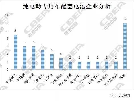 從配套企業(yè)來看,前五名分別是寧德時代9款、普萊德/國軒高科6款,力神電池5款,比亞迪4款,國能電池3款。
