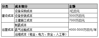 根據(jù)日本產(chǎn)經(jīng)省的數(shù)據(jù),日本建設(shè)一座加氫站的投資成本約4.5億日元(約合3000萬元人民幣),是日本加油站建設(shè)成本的5倍。另外,加氫站每年還要承擔(dān)4000~5000萬日元(約合300萬元人民幣)運(yùn)營(yíng)成本。