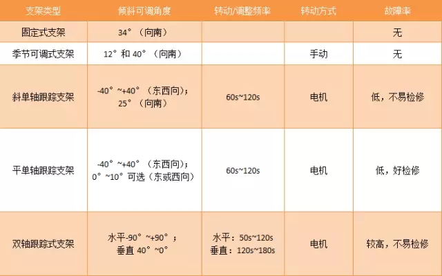據(jù)了解,目前常用的支架類型有四種,固定式支架、季節(jié)可調(diào)式支架、單軸跟蹤式支架(分為平單軸和斜單軸)和雙軸跟蹤式支架。其中固定式支架維護(hù)量很小,市場(chǎng)上流行的雙軸跟蹤支架,還有斜單軸、平單軸的維護(hù)量比較大。季節(jié)可調(diào)式支架一次性的維護(hù)量比較大,但是其投資成本和固定支架的投資成本基本相同。