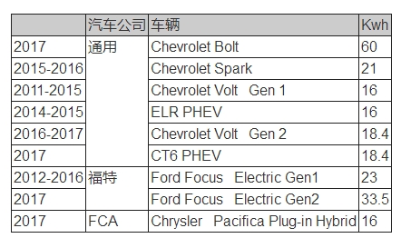 表2 LG化學(xué)在美國供應(yīng)的三大美國汽車公司情況