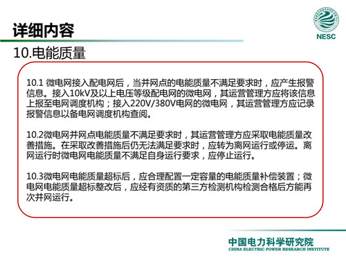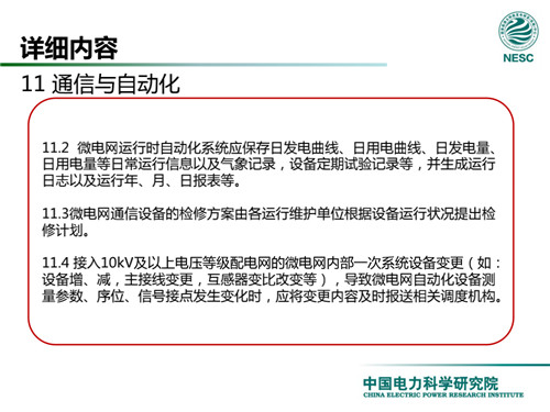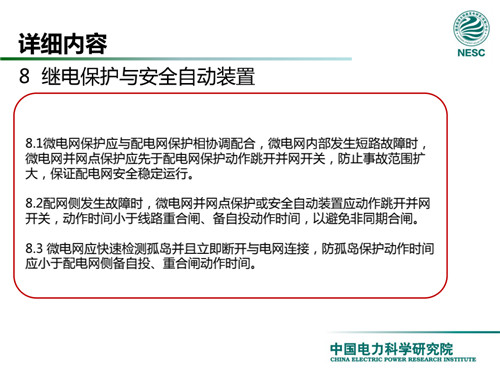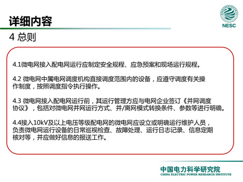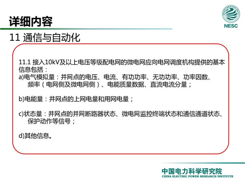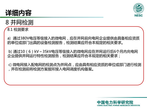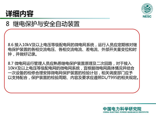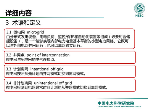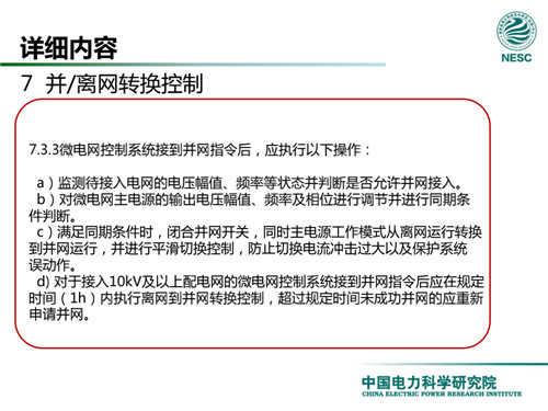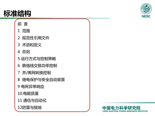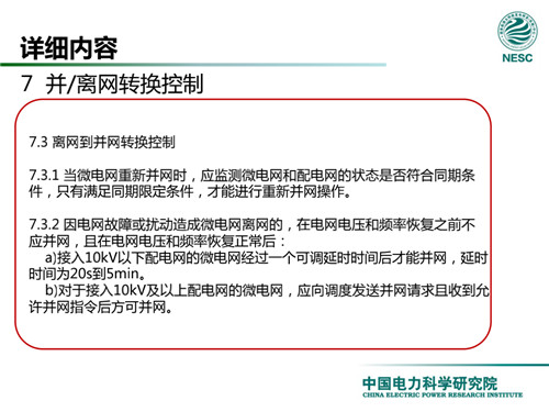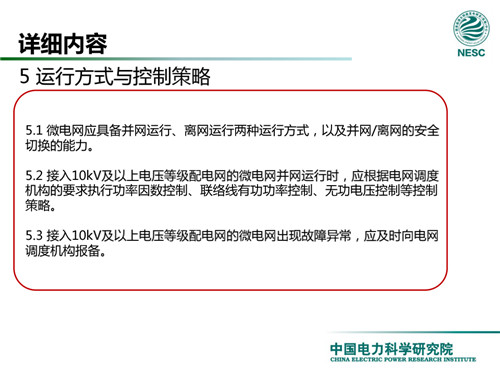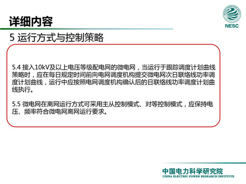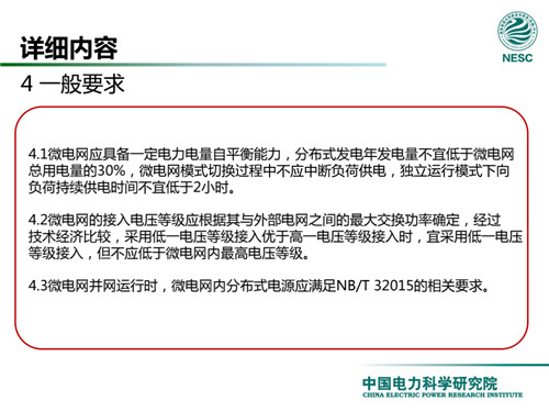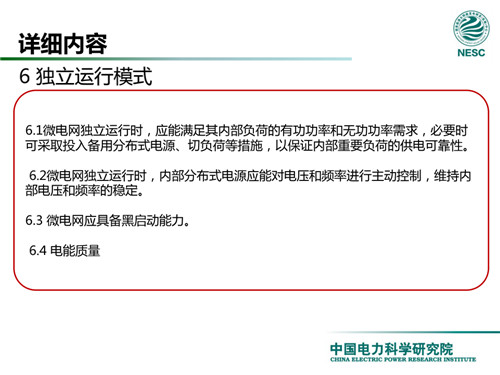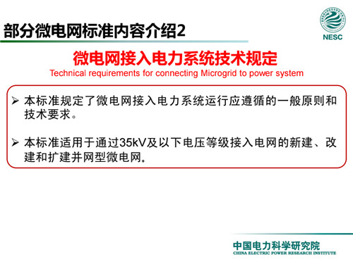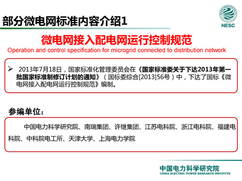 2013年7月18日,國(guó)家標(biāo)準(zhǔn)化管理委員會(huì)在《國(guó)家標(biāo)準(zhǔn)委關(guān)于下達(dá)2013年第一批國(guó)家標(biāo)準(zhǔn)制修訂計(jì)劃的通知》(國(guó)標(biāo)委綜合[2013]56號(hào))中,下達(dá)了國(guó)標(biāo)《微電網(wǎng)接入配電網(wǎng)運(yùn)行控制規(guī)范》編制。該標(biāo)準(zhǔn)規(guī)定了微電網(wǎng)接入配電網(wǎng)運(yùn)行控制應(yīng)遵循的規(guī)范和要求。包括微電網(wǎng)的運(yùn)行方式不控制策略、聯(lián)絡(luò)線交換功率控制、并/離網(wǎng)轉(zhuǎn)換控制、繼電保護(hù)不安全自動(dòng)裝置、電網(wǎng)異常響應(yīng)、電能質(zhì)量、通信與自動(dòng)化等。適用于接入35kV及以下電壓等級(jí)配電網(wǎng)的微電網(wǎng)系統(tǒng)。
