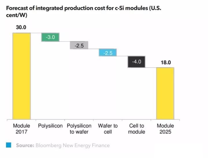 中國儲(chǔ)能網(wǎng)訊:目前,全球光伏發(fā)電量占總發(fā)電量的比例少于2%,基于光伏技術(shù)成本的不斷下降,彭博新能源財(cái)經(jīng)預(yù)計(jì)在未來23年里將有4000GW新增裝機(jī)容量,且全球光伏發(fā)電量將于2040年增長至17%。