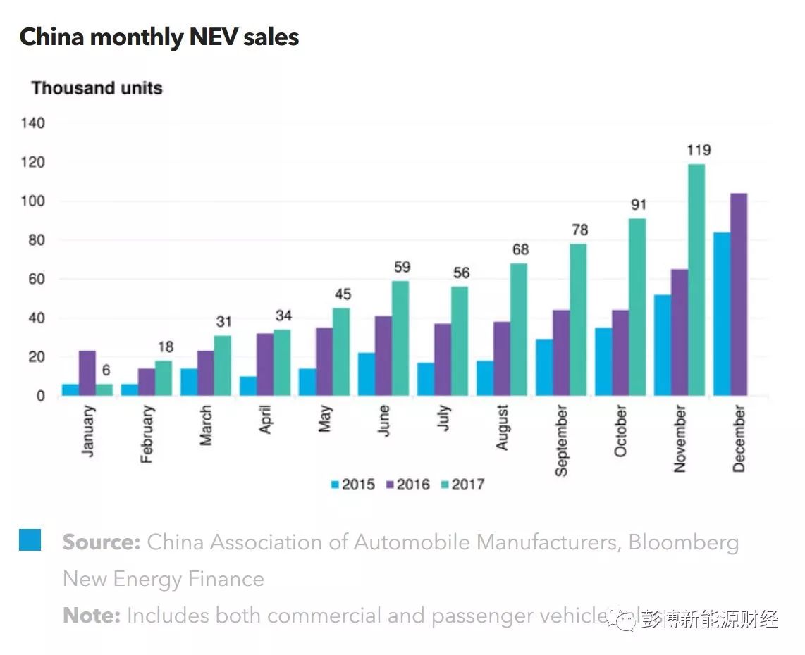 如果明年實際的補貼調整和流傳的方案一致,那么12月份的銷量有望再創(chuàng)新高。但明年一季度的銷量將再次回落,因為中央和地方政府要重新審定新上報車型的補貼額度。而后續(xù)幾個季度銷量將有所回升。預計中國明年新能源車銷量將沖擊100萬輛大關。這幾乎相當于2017年全球所有新能源乘用車銷量的總和。