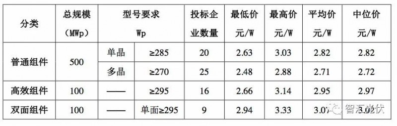 從上表可以看出:1)最低、最高投標(biāo)價(jià)的差值高達(dá)0.39~0.48元/W,主要集中在0.4元/W!