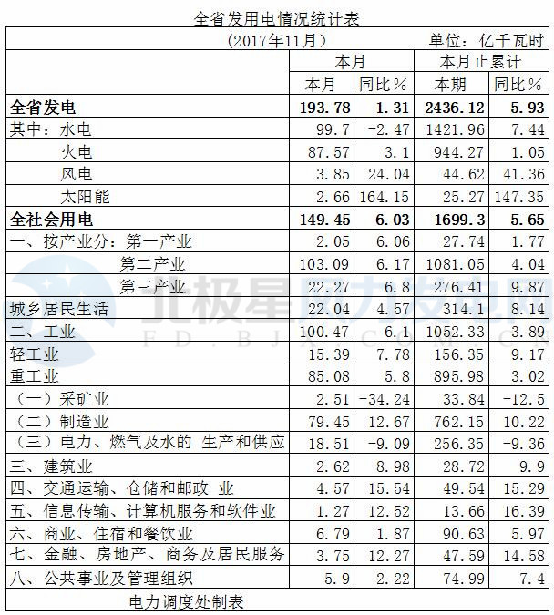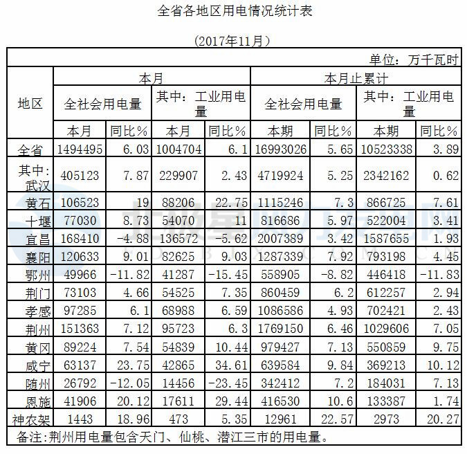 11月份,全社會用電149.45億千瓦時,同比增長6.03%。元至11月,全社會累計用電1699.30億千瓦時,同比增長5.65%。以下為具體數(shù)據(jù):