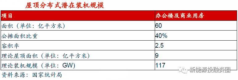 我們對(duì)目前商業(yè)樓宇的潛在裝機(jī)規(guī)模做預(yù)測(cè),僅考慮辦公樓和商業(yè)用房建筑面積,分布式裝機(jī)空間已超過(guò)100GW。