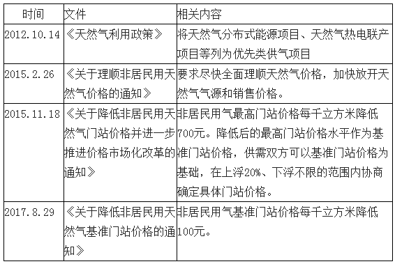 另一方面,近年來,國(guó)家陸續(xù)制訂天然氣政策對(duì)天然氣分布式能源行業(yè)進(jìn)行扶持:2012年出臺(tái)的《天然氣利用政策》,將天然氣分布式能源項(xiàng)目、天然氣熱電聯(lián)產(chǎn)項(xiàng)目等列為優(yōu)先類供氣項(xiàng)目;2015年11月,發(fā)改委發(fā)布通知,非居民用氣門站價(jià)格每千立方米降低700元;2017年8月,發(fā)改委再次調(diào)整非居民用氣基準(zhǔn)門站價(jià)格,每千立方米下調(diào)100元。隨著天然氣價(jià)格的下調(diào),天然氣交易市場(chǎng)化推進(jìn),世紀(jì)新能源的成本不斷下降。