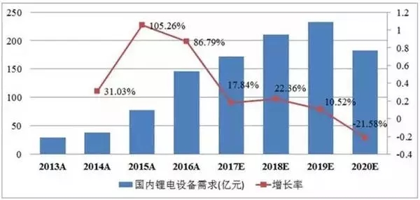 圖為國內(nèi)鋰電設(shè)備需求預(yù)測,來源于網(wǎng)絡(luò)