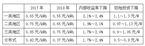 中國儲能網(wǎng)訊:國家發(fā)展改革委于2017年12月22號下發(fā)《關(guān)于2018年光伏發(fā)電項目價格政策的通知》,要求降低2018年1月1日之后投運的光伏電站標桿上網(wǎng)電價,Ⅰ類、Ⅱ類、Ⅲ類資源區(qū)標桿上網(wǎng)電價分別調(diào)整為每千瓦時0.55元、0.65元、0.75元(含稅);村級光伏扶貧電站上網(wǎng)電價分別為0.65元、0.75元、0.85元;通知規(guī)定,2018年1月1日以后投運的、采用“自發(fā)自用、余量上網(wǎng)”模式的分布式光伏發(fā)電項目,全電量度電補貼標準降低0.05元,即補貼標準調(diào)整為每千瓦時0.37元(含稅)。采用“全額上網(wǎng)”模式的分布式光伏發(fā)電項目按所在資源區(qū)光伏電站價格執(zhí)行。