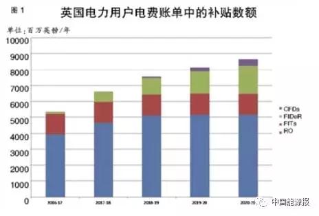 自2002年設(shè)立可再生能源義務(wù)證書制度以來,英國的可再生能源裝機(jī)提高了數(shù)倍。但是,可再生能源義務(wù)證書制度也產(chǎn)生了很多的問題,例如由于缺乏市場競爭機(jī)制,造成這些可再生能源發(fā)電項(xiàng)目的成本居高不下。此外,可再生能源義務(wù)證書的價(jià)格波動,無疑也給可再生能源發(fā)電企業(yè)投資者的融資帶來的較高的成本。而這些成本,最終都需要廣大電力消費(fèi)者來買單。下面這張圖顯示了當(dāng)前英國電力用戶電費(fèi)賬單中,各類補(bǔ)貼政策的金額,可以發(fā)現(xiàn)絕大部分補(bǔ)貼金額都流向了可再生能源義務(wù)證書制度的發(fā)電項(xiàng)目。(見圖1)