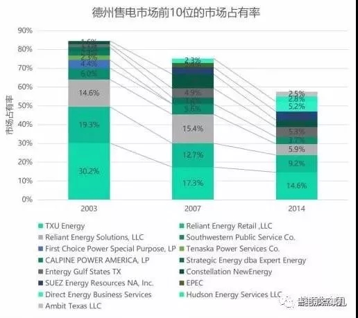 2002年德州剛剛放開售電側的時候,新的小的售電商還沒有形成規(guī)模效應,沒有很強大的實力和傳統(tǒng)的發(fā)電集團的售電公司競爭,但是政府有意引入競爭,所以設置了2002-2007年的五年保護期,保護期內政府規(guī)定了一個最高價格,要求傳統(tǒng)售電公司賣給用戶的電價不能低于最高價格,一方面刺激了新進入售電市場的售電公司,將運營成本降低到最高價格之下;另一方面對傳統(tǒng)的售電公司進行限制,不允許以低價進行競爭。