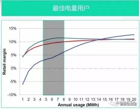 慢慢就會發(fā)現,在大用戶和小用戶之間可能存在一個最佳的電量點,在最佳電量點附近的用戶身上賺到的毛利是最大的,而這一點往往取決于售電公司針對不同用戶的運營費用。