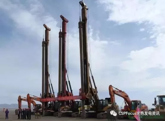 2017年9月15日,深圳市金釩能源科技有限公司阿克塞5萬千瓦熔鹽槽式光熱發(fā)電項目舉行集熱場樁基工程開工儀式,開始對集熱場樁基進行施工。