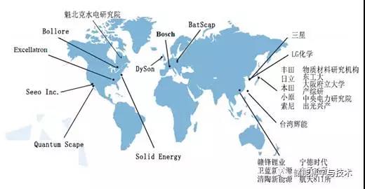 圖6 世界范圍內(nèi)部分全固態(tài)鋰二次電池研究機(jī)構(gòu)及企業(yè)分布圖(圖中僅羅列全球部分全固態(tài)鋰電池研究機(jī)構(gòu)及企業(yè),如有遺漏,歡迎補(bǔ)充)