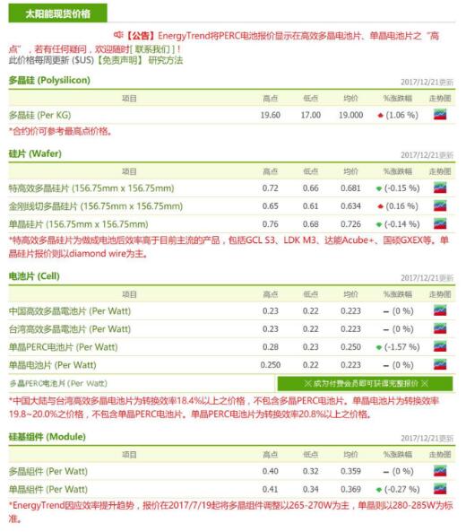 本周組件價(jià)格穩(wěn)定,因?yàn)榇髲S(chǎng)有各種轉(zhuǎn)移訂單的方式,讓將生產(chǎn)排程排至一月,使得訂單能夠穩(wěn)定下來(lái)。然而隨著中國(guó)大陸分布式行情接近尾聲,中小型組件廠(chǎng)反饋一月訂單能見(jiàn)度不足,對(duì)市況較為擔(dān)憂(yōu)。中國(guó)已正式調(diào)降分布式系統(tǒng)的FIT,且要求從2018/1/1開(kāi)始執(zhí)行,但預(yù)期此類(lèi)需求仍會(huì)持續(xù),另會(huì)有來(lái)自今年遞延的領(lǐng)跑者項(xiàng)目的需求。
