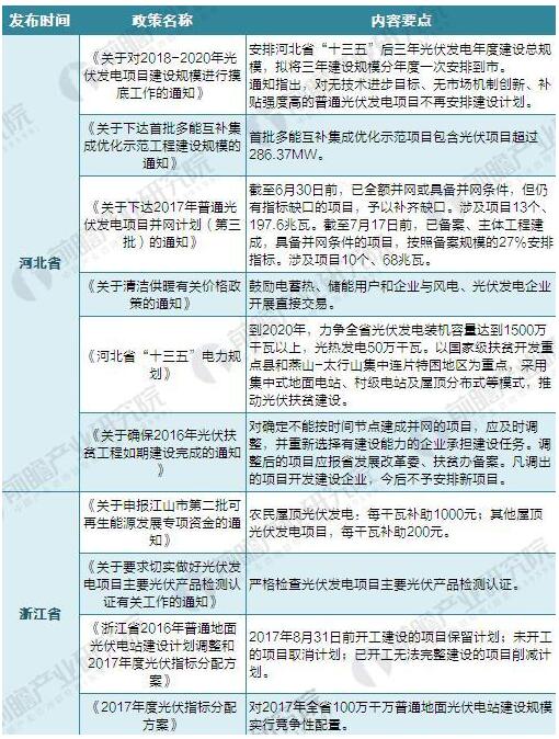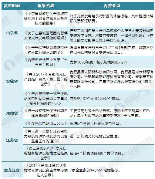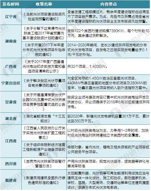 圖表3:2017年11月我國主要省份發(fā)布的光伏發(fā)電政策匯總及解讀(一)