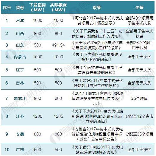 針對(duì)于2017年的光伏新增建設(shè)指標(biāo)多數(shù)省份已經(jīng)下發(fā)分配情況,山東省、河北省、山西省、內(nèi)蒙古、遼寧省、吉林省、廣東省以及湖南省將全部指標(biāo)用于光伏扶貧項(xiàng)目。