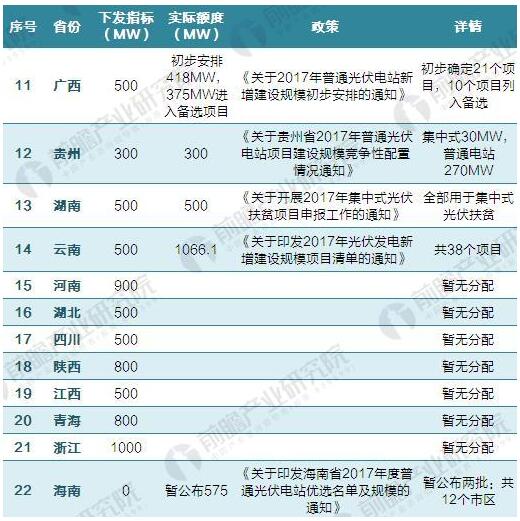 圖表7:2017各省光伏指標(biāo)具體分配情況(二)