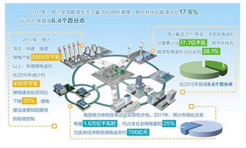 與此同時(shí),煤炭去產(chǎn)能和防范化解煤電產(chǎn)能過剩風(fēng)險(xiǎn)取得重要階段性成果。2017年,預(yù)計(jì)淘汰、停建、緩建煤電產(chǎn)能5000萬千瓦以上,新增煤電裝機(jī)比2016年減少約400萬千瓦,煤電建設(shè)投資同比下降25%,煤電建設(shè)速度和規(guī)模得到有效控制。