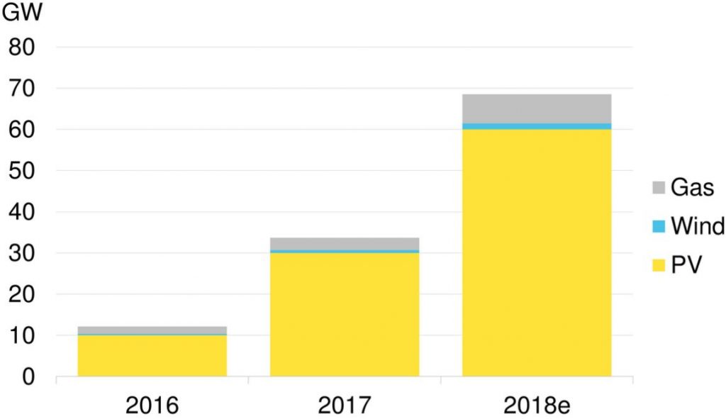 BNEF認(rèn)為,隨著新政策的實(shí)施,2018年,屋頂太陽(yáng)能裝置將激增70%達(dá)到24吉瓦。
