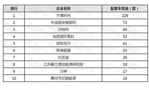 圖4: “BMS+PACK”模式類占車型量排行前10家企業(yè)