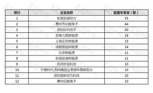 圖2:電池廠自營(yíng)BMS類占車型量排行前10家企業(yè)