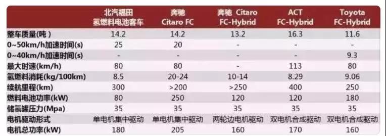 表2國(guó)內(nèi)外燃料電池客車性能對(duì)比