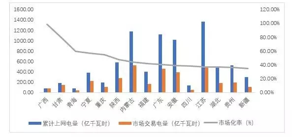 圖2 1-9月市場化率高于33%的省區(qū)市場交易情況示意圖