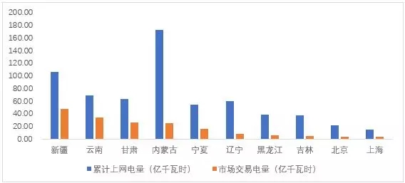 1-9月,大型發(fā)電集團參加風(fēng)電市場化交易的省份共有14個,其中市場化交易電量最多的三個省份是新疆、云南和甘肅,分別為47.2、33.9和26.7億千瓦時,平均交易電價(含跨省跨區(qū)送出交易電量電價)分別為0.445、0.509和0.409元/千瓦時。