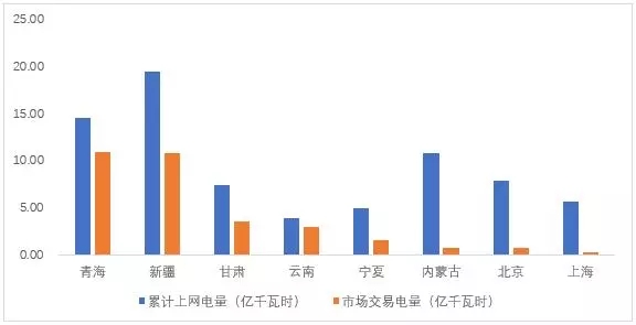 1-9月,大型發(fā)電集團光伏發(fā)電參與市場化交易的省份一共有8個,其中交易電量最多的三個省份是青海、新疆和甘肅,分別為11億千瓦時、10.8億千瓦時和3.5億千瓦時,平均交易電價(含跨省跨區(qū)送出交易電量電價)分別為0.910元/千瓦時、0.727元/千瓦時和0.822元/千瓦時。