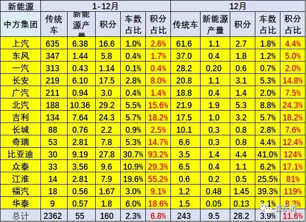 總體看,2017年1-12月的新能源汽車積分比例占比達到6.8%,較2016年的4.1%有明顯的提升。而且由于2016年是完整的年度,屬于前低后高的特征,例如2016年12月是4.6%,而2017年12月是11.6%,環(huán)比2016年12月高出近7個百分點,這也是傳統(tǒng)車的生產(chǎn)少,出口多,因此17年的提升幅度顯得更大。