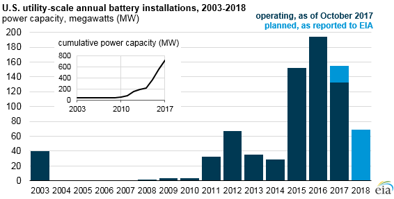 美國能源信息署(EIA)發(fā)布的2016年“年度發(fā)電機(jī)報(bào)告”中涵蓋了有關(guān)電池容量,充放電速率,存儲(chǔ)技術(shù)類型,無功功率額定值,存儲(chǔ)技術(shù)類型和預(yù)期使用情況等儲(chǔ)能情況的詳細(xì)信息。