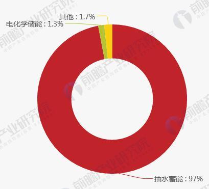 根據(jù)前瞻產(chǎn)業(yè)研究院發(fā)布的數(shù)據(jù),截至2017年第三季度,全球已投運(yùn)儲(chǔ)能項(xiàng)目累計(jì)裝機(jī)規(guī)模為169.2吉瓦,其中電化學(xué)儲(chǔ)能項(xiàng)目累計(jì)裝機(jī)規(guī)模達(dá)2244.4兆瓦,占比1.3%,排名第三,所占比重相比去年增長(zhǎng)15%。抽水蓄能仍高居榜首,占比達(dá)97%。