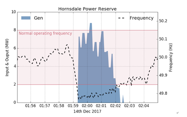 這是霍恩斯代爾能源儲備公司提供的服務之一。圖3顯示了霍恩斯代爾能源儲備公司如何應對一起停電事件,其中一臺Loy Yang A在2017年12月14日停電。