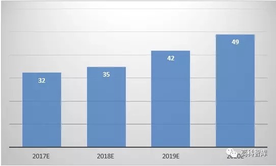 2017-2020年中國BIPV市場規(guī)模預(yù)測(單位:億元),資料來源:OFweek行業(yè)研究中心
