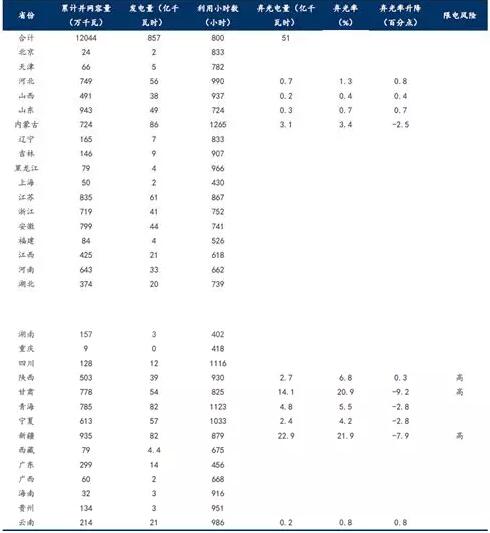 國家能源局統(tǒng)計的去年前三季度風電和光伏利用及棄風率統(tǒng)計表(注:棄光率升降是與2016年全年對比結(jié)果)。