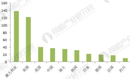 圖表3:2017年三季度全球新增在建/規(guī)劃電化學(xué)儲能項目裝機規(guī)模排名前十的國家(單位:MW)