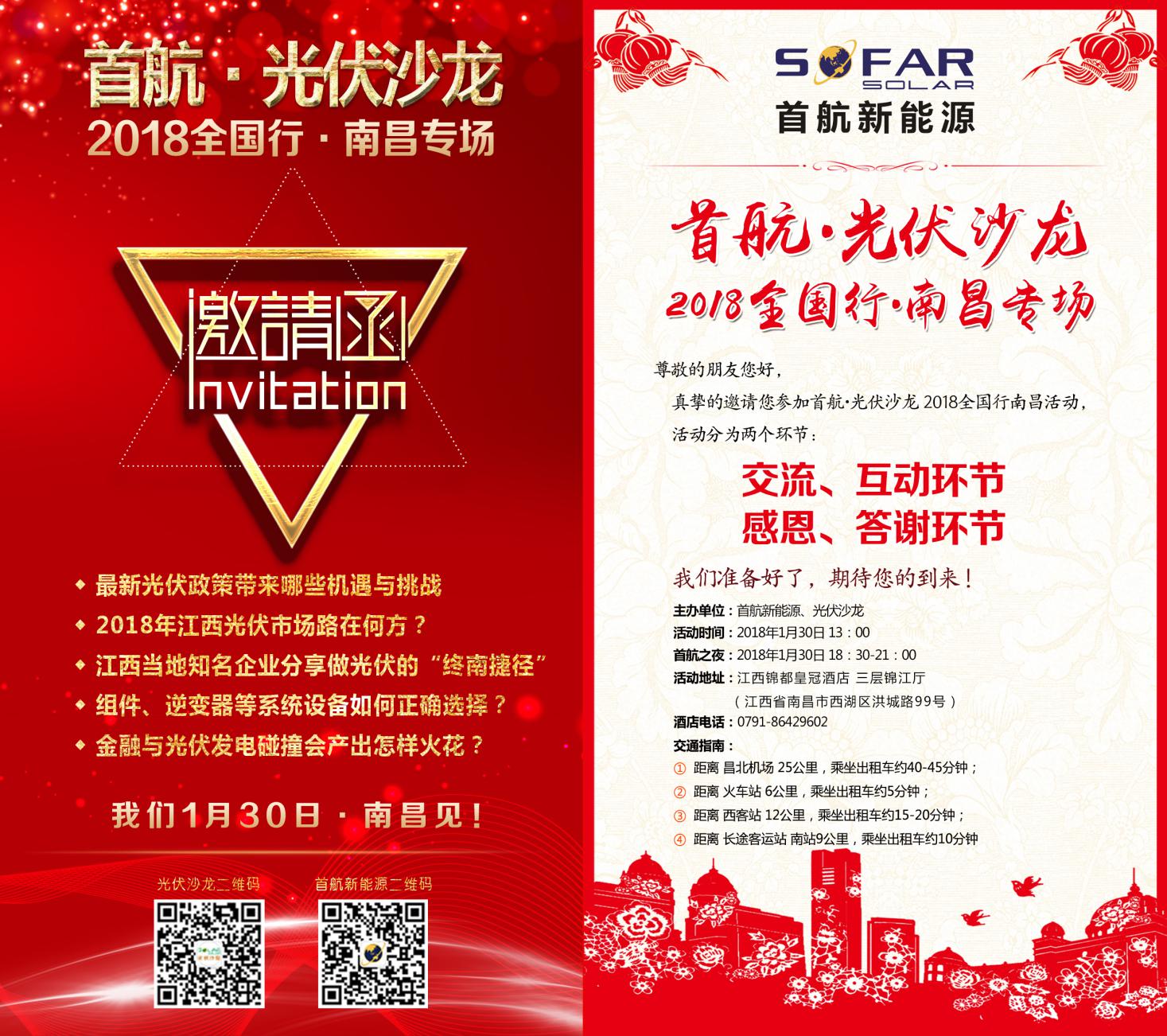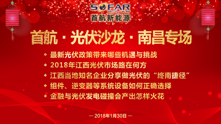 中國儲能網(wǎng)訊:由首航新能源,尚德·益家、泰坦光伏等企業(yè)聯(lián)合舉辦的“光伏沙龍全國行”活動,將于1月30日下午1點在江西南昌錦都皇冠酒店(西湖區(qū)洪城路99號)拉開帷幕,屆時光伏產(chǎn)業(yè)鏈數(shù)百家企業(yè)參會,參會人員覆蓋組件、逆變器、支架、監(jiān)控、系統(tǒng)等細分領域。同時,當?shù)叵嚓P部門領導、協(xié)會、媒體也將出席該場活動。