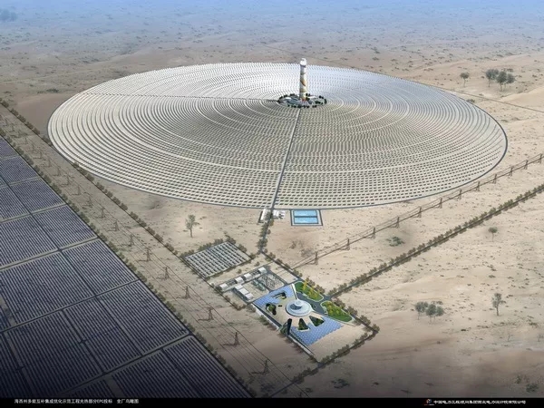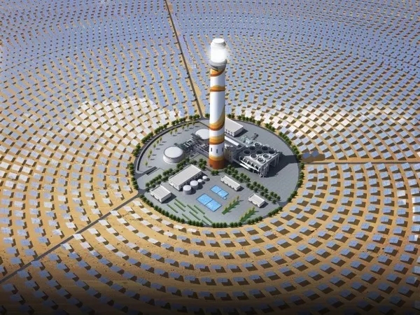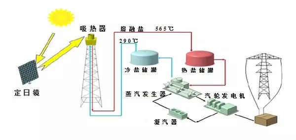光熱電站位于光伏電站南側(cè),采用塔式熔鹽技術(shù),儲熱時長為12小時。