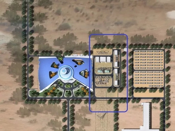 儲能電站在光熱用地范圍的西北角,毗鄰330千伏匯集站,占地面積約100公頃。