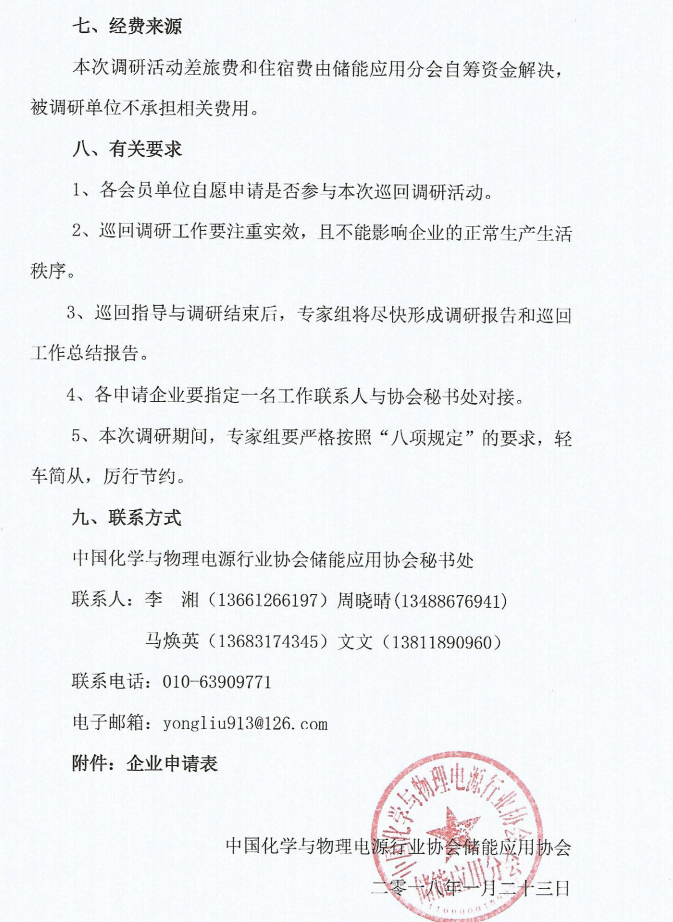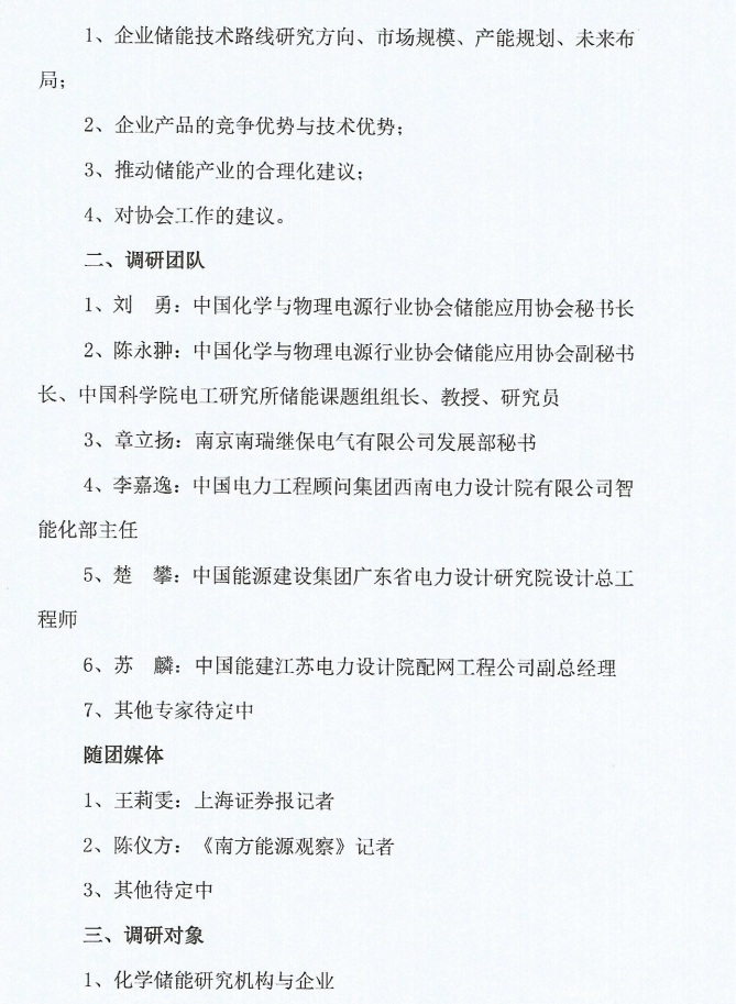 本次調(diào)研活動差旅費和住宿費由儲能應(yīng)用分會自籌資金解決,被調(diào)研單位不承擔(dān)相關(guān)費用。