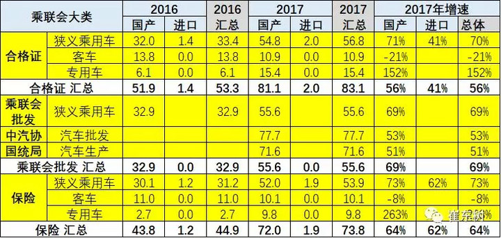 從乘聯(lián)會廠家批發(fā)數(shù)據(jù)看,2017年狹義乘用車批發(fā)55.6萬臺,同比增長近70%。從中汽協(xié)數(shù)據(jù)看17年汽車廠家批發(fā)77萬臺,增長53%。