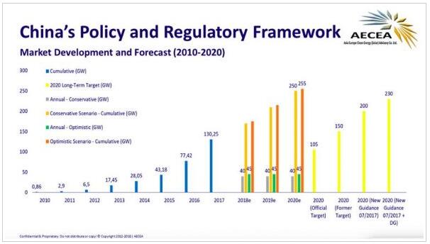 而官方對(duì)于2020年的累計(jì)裝機(jī)目標(biāo)也幾經(jīng)上調(diào),從最初的105GW到目前的230GW;而業(yè)內(nèi)專(zhuān)家預(yù)計(jì)中國(guó)到2020年裝機(jī)可達(dá)250-255GW。