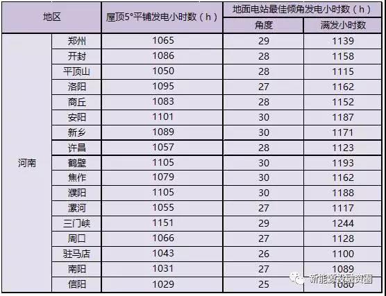 河南省太陽能資源從地域分布來看,從南向北逐漸增加。各市的太陽能資源概況見下表。