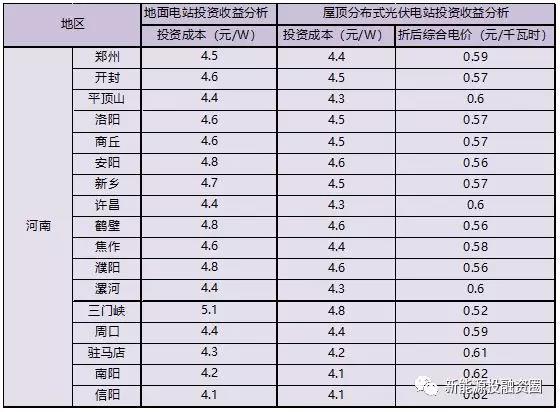 中國(guó)儲(chǔ)能網(wǎng)訊:河南界于北緯31°23'-36°22',東經(jīng)110°21'-116°39'之間,東接安徽、山東,北界河北、山西,西連陜西,南臨湖北,呈望北向南、承東啟西之勢(shì)。河南省轄鄭州市 、開封市 、洛陽市 、平頂山市、許昌市 、漯河市 、三門峽市、 南陽市 、商丘市、信陽市、周口市、 駐馬店市、安陽市、 鶴壁市 、新鄉(xiāng)市、 焦作市、濮陽市17個(gè)地級(jí)市,本篇文章投融君就來帶大家測(cè)算一下這17個(gè)地級(jí)市的光伏項(xiàng)目投資收益,主要分析的三種項(xiàng)目類型包含地面電站、屋頂全額上網(wǎng)電站和屋頂自發(fā)自用電站。