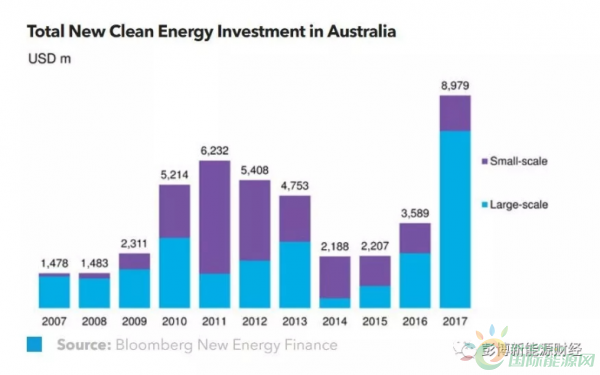2017年,澳大利亞大規(guī)模清潔能源項目的投資規(guī)模