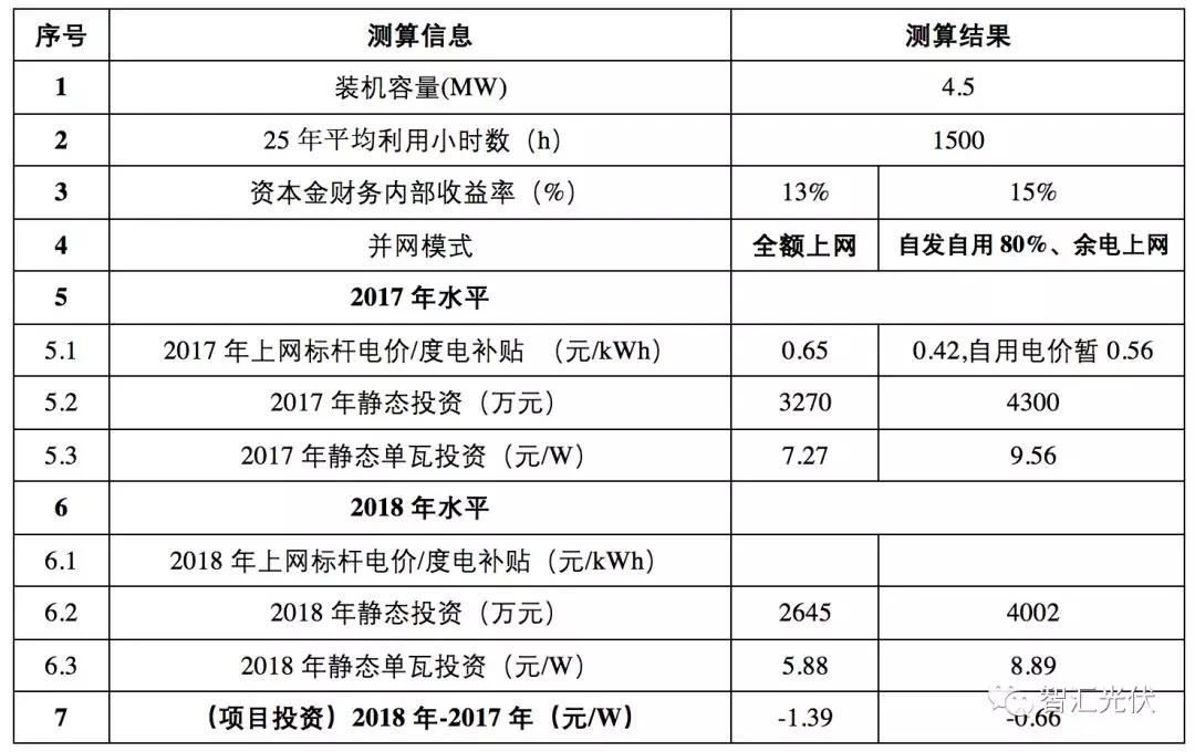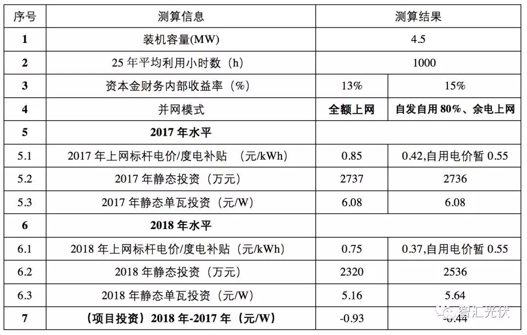 3)自發(fā)自用、余電上網(wǎng)模式下,電價(jià)下調(diào)后資本金內(nèi)部收益率要保持15%,投資要分別下降0.4~0.7元/W,Ⅰ類、Ⅱ類、Ⅲ類資源區(qū)的總投資水平分別應(yīng)該控制在8.89元/W、7.91元/W、5.64元/W。