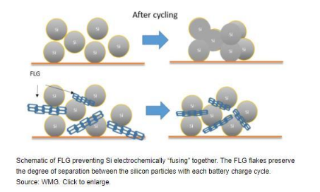 中國儲能網(wǎng)訊:據(jù)外媒報道,華威大學(xué)制造工程系(Warwick Manufacturing Group,WMG)的研究人員研發(fā)了硅-高質(zhì)量薄層石墨烯(Silicon-Few Layer Graphene,Si-FLG)復(fù)合電極(composite electrodes),將其用作為鋰離子電池陽極石墨的高效替代品。