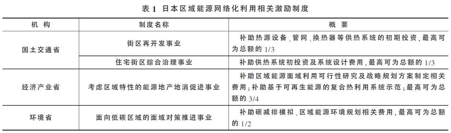 表1給出了日本區(qū)域能源網(wǎng)絡化利用的一些相關激勵制度。除國家層面外,各地方政府也出臺了相應政策措施。